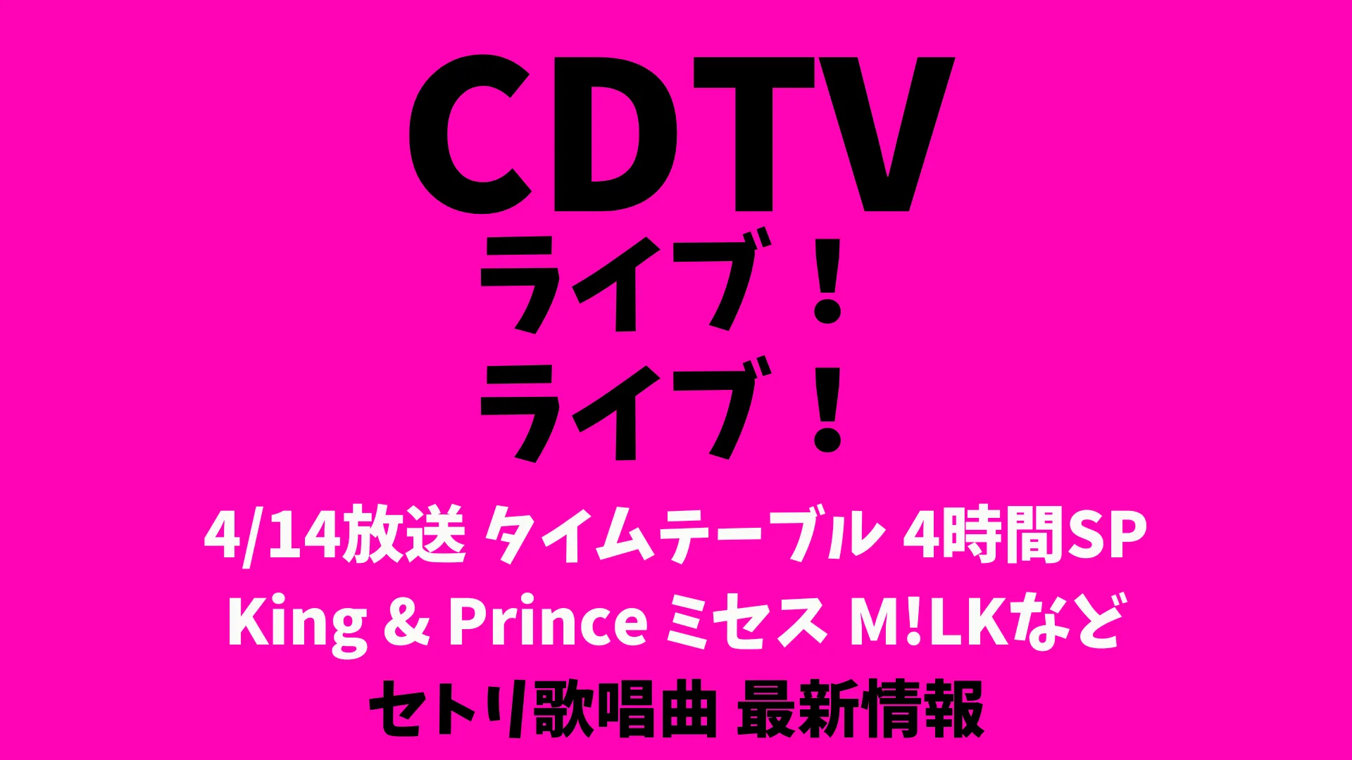 CDTVライブライブ今日4/14タイムテーブル出演順番 King & Prince ミセス M!LKなどリアルタイム更新 | Freak…